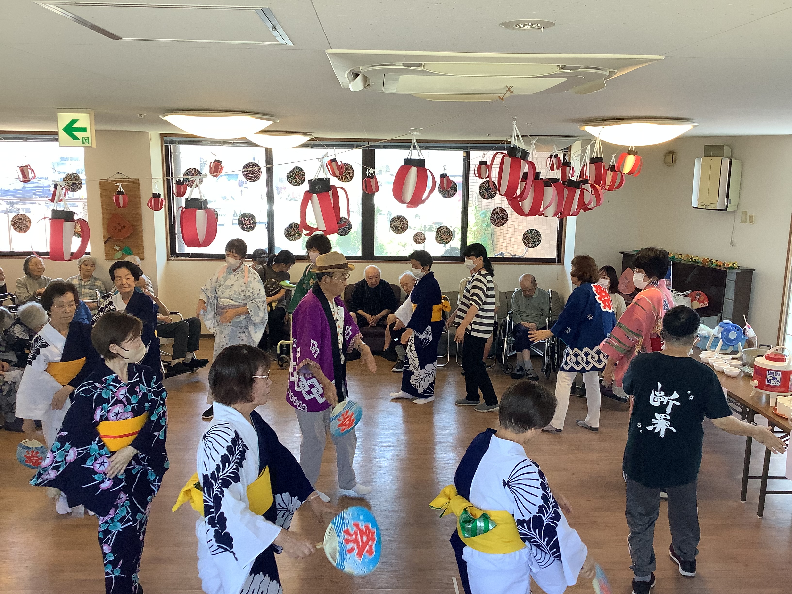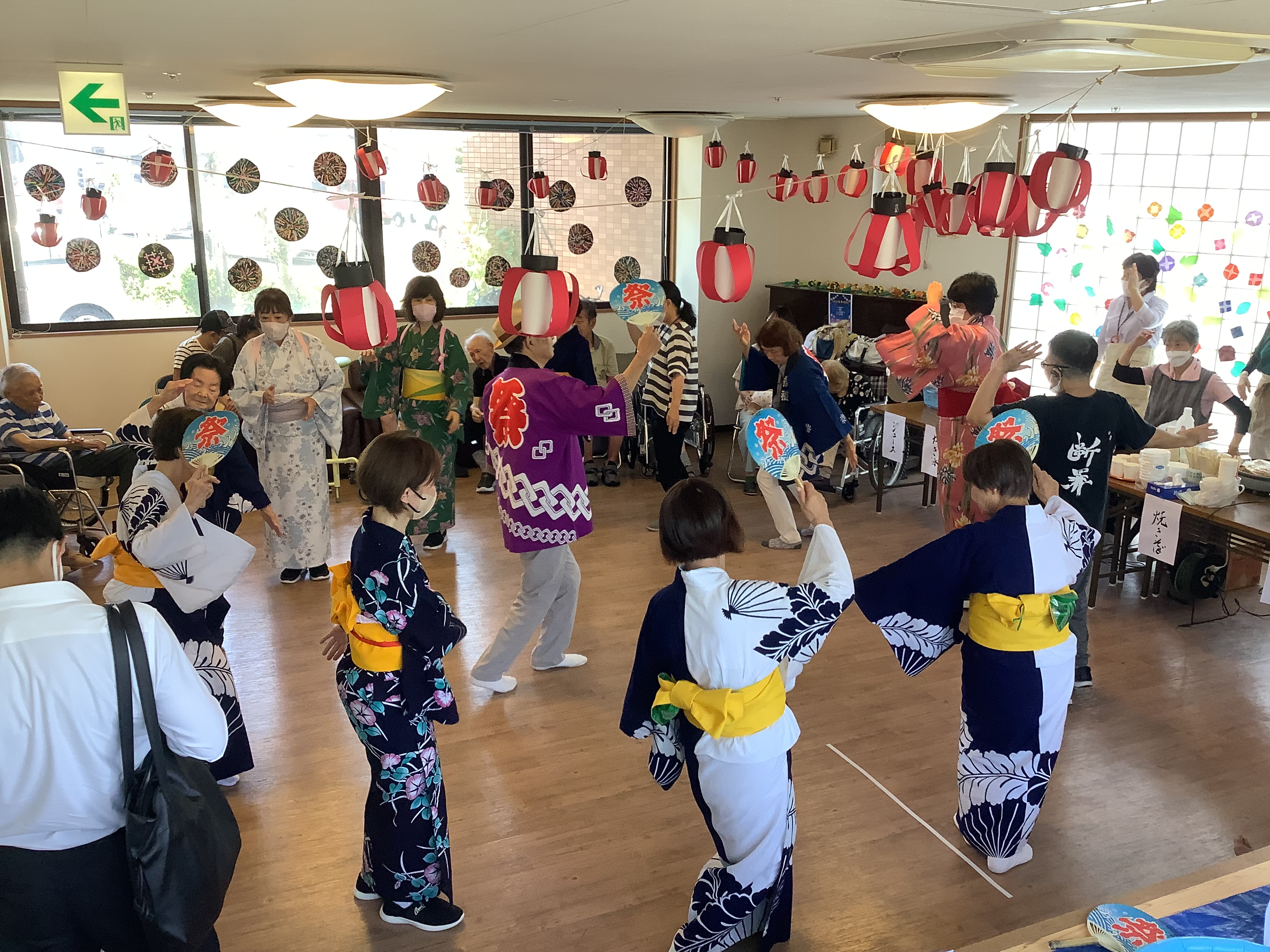 ご協力していただいた地域のケアマネージャー様、三方原南自治会の盆踊りのボランティアの皆様、ご参加いただきましたご家族様、浴衣を着付けていただいた先生、当日はご協力ありがとうございました。今回は、たくさんの方々のご協力をいただきまして、盛大に開催ができました。本当にありがとうございました。おかげ様で無事、夏祭りを行う事が出来ました。
